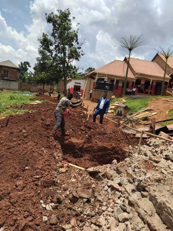 Mit den bisher verfügbaren Mitteln konnten bereits die Wände und ein Teil der Dachkonstruktion fertig gestellt werden. Mit den nächsten Spenden sollen das Dach fertiggestellt sowie Türen und Fenster beschafft werden.
