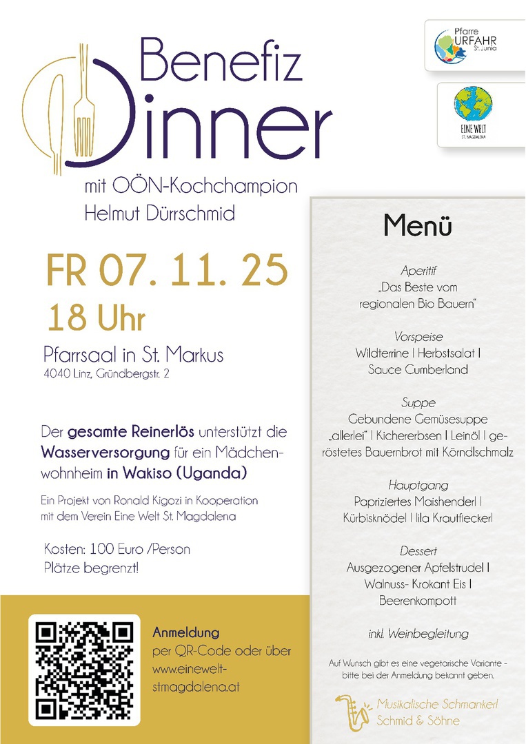 Das 6-gängige Menü, das OÖN-Kochchampion Heli Dürrschmid und sein Team am 04.11.2023 in den Räumlichkeiten der Pfrarre St. Markus gezaubert hatte war ausgezeichnet, und die Gäste hatten so einen sehr unterhaltsamen und kulinarisch wertvollen Abend, bei dem vom Grammelschmalz bis zur Eiskugel alles handgemacht war.