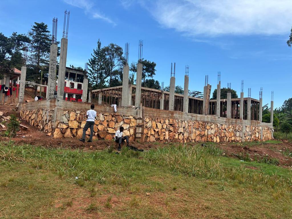 Mit den bisher verfügbaren Mitteln konnten bereits die Wände und ein Teil der Dachkonstruktion fertig gestellt werden. Mit den nächsten Spenden sollen das Dach fertiggestellt sowie Türen und Fenster beschafft werden.